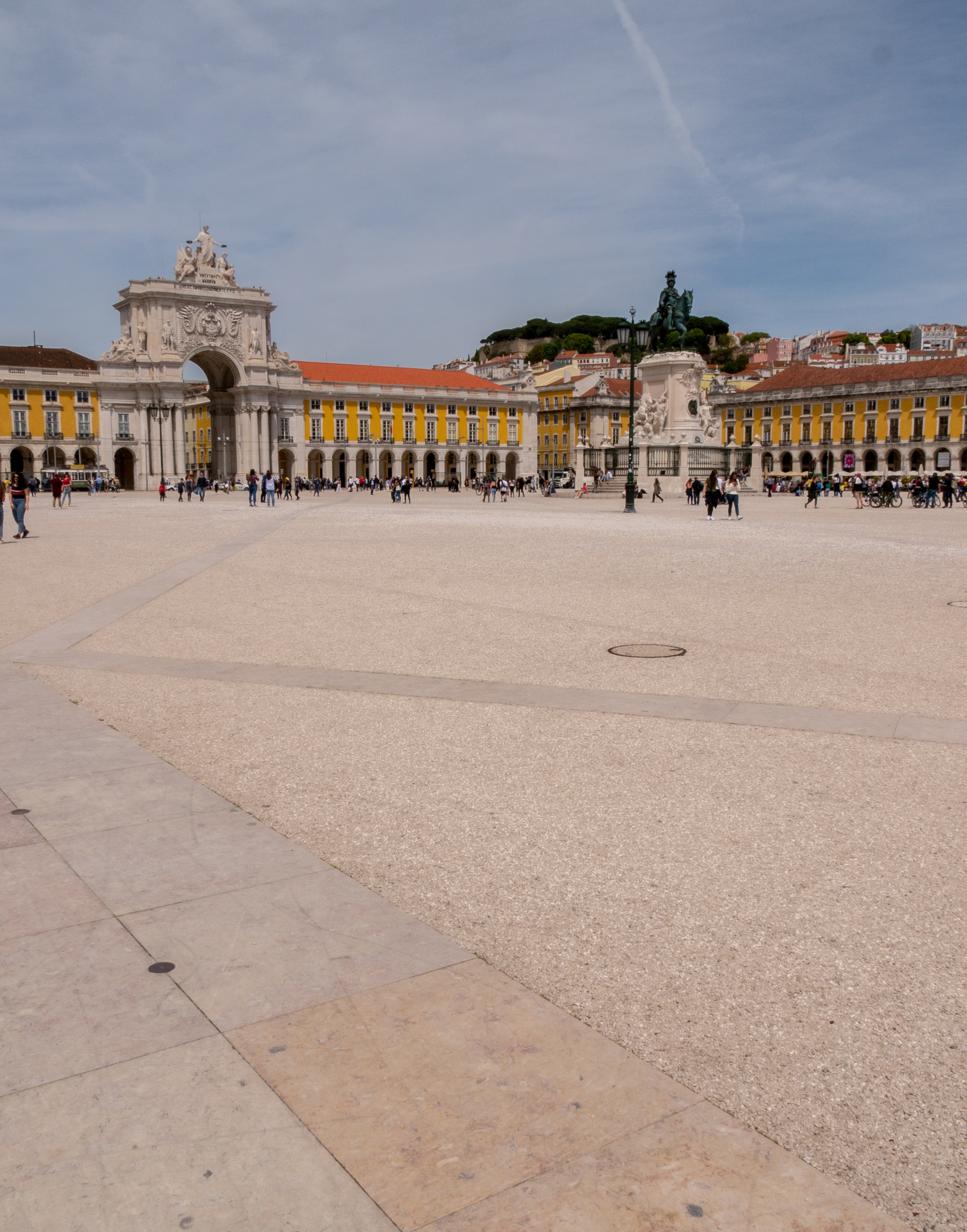Op de dag van aankomst ben ik als eerste opzoek gegaan naar het Praca do Comércio, het druk bezochte hart van de oude stad. Het enorme plein, gelegen aan de oever van de Taag, was van oudsher bedoeld voor handel in specerijen en kruiden die via schepen werd aangevoerd vanuit verre oorden, maar is tegenwoordig hét toeristisch centrum van Lissabon, waar vele straatventers en artiesten hun opwachting maken om hun product aan de man te brengen. Direct aan de rivieroever, op de Cais das Colunas, kun je rustig zitten, om de scheepvaart te volgen en de voorbij trekkende mensen te bekijken of gewoon genieten van de zon en het water. Regelmatig komen en vertrekken er grote cruiseschepen en zijn er veel zeilboten die voorbij glijden. Op het kleine strandje ernaast vertoond een Kei kunstenaar zijn evenwichtskunsten met keien. Deze fijne plek heb ik een aantal keer bezocht, gewoon om er te zijn… Via de Arco da Rua Augusta loop je de Rua da Augusta in, een drukke gezellige winkelstraat met veel straatartiesten en terrassen, waar je voor niet al teveel geld prima kunt eten en drinken. Ik maak kennis met de beroemde Pastel de Nata, een populair custard taartje.