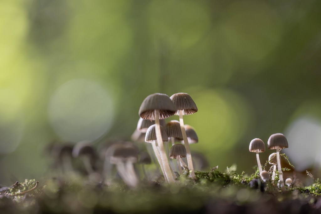 Here you have a beautiful mushroom “Fairy Inkcap” family, lit by an early afternoon light shining through the foliage.